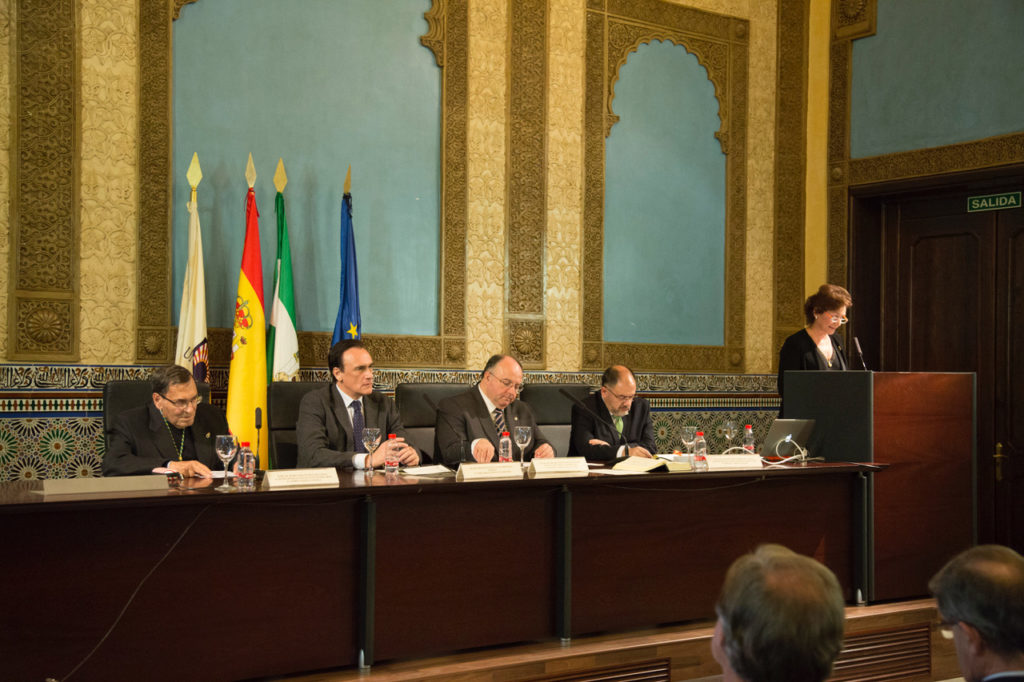 La mesa presidencial del acto estuvo formada por el Excmo. Sr Presidente del Instituto de Academias de Andalucía, D. Benito Valdés Castrillón, el Excmo. Sr Presidente de la Real Academia Sevillana de Ciencias Veterinarias, D. Antonio A. Oropesa de Cáceres y el Ilmo. Sr Vicepresidente de la Real Academia Sevillana de Ciencias Veterinarias, D. Ramón Santos Luque que hizo las veces de Secretario accidental.