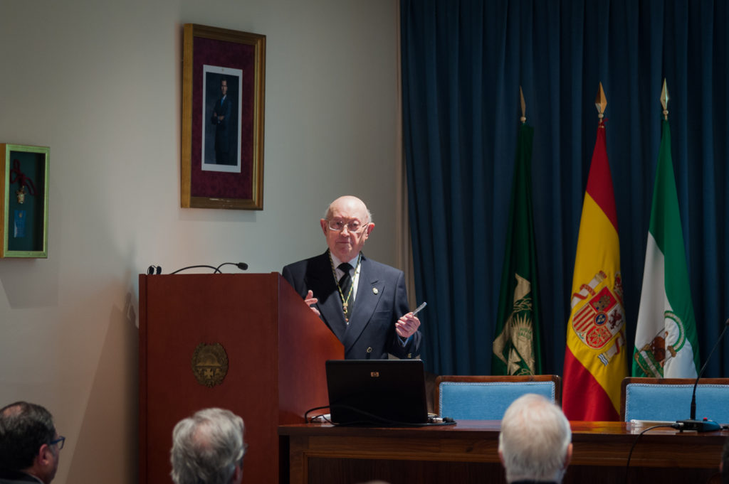 El título de su discurso de ingreso fue “EL DESCONTROL DEL MOVIMIENTO CORPORAL” y el discurso de contestación estuvo a cargo del Ilmo. Sr. Dr. D. LIBRADO CARRASCO OTERO, Académico Numerario de esta Institución, Catedrático y Ex-decano de la Facultad de Veterinaria de Córdoba
